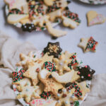 Anschließend auf einer leicht bemehlten Arbeitsfläche ausrollen, Plätzchen ausstechen und auf einem mit Backpapier ausgelegten Backblech je 10-15 Minuten backen. (Bei mir sind es 12 Minuten, ihr müsst es für euch herausfinden.)